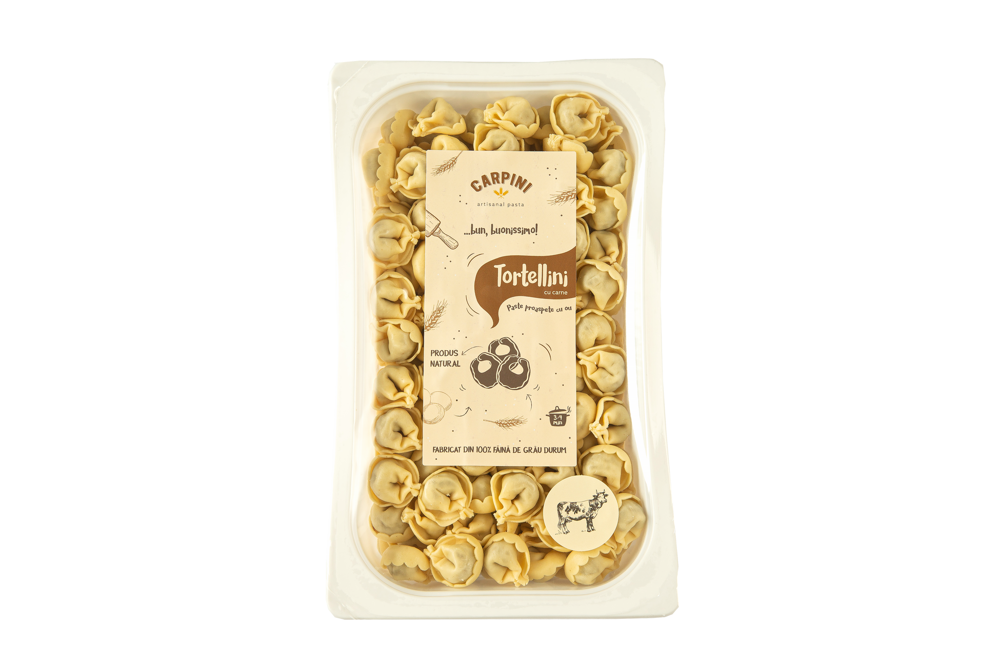 Ingrediente: Făină de grâu durum, ou, apă, sare, piper negru, carne de vită